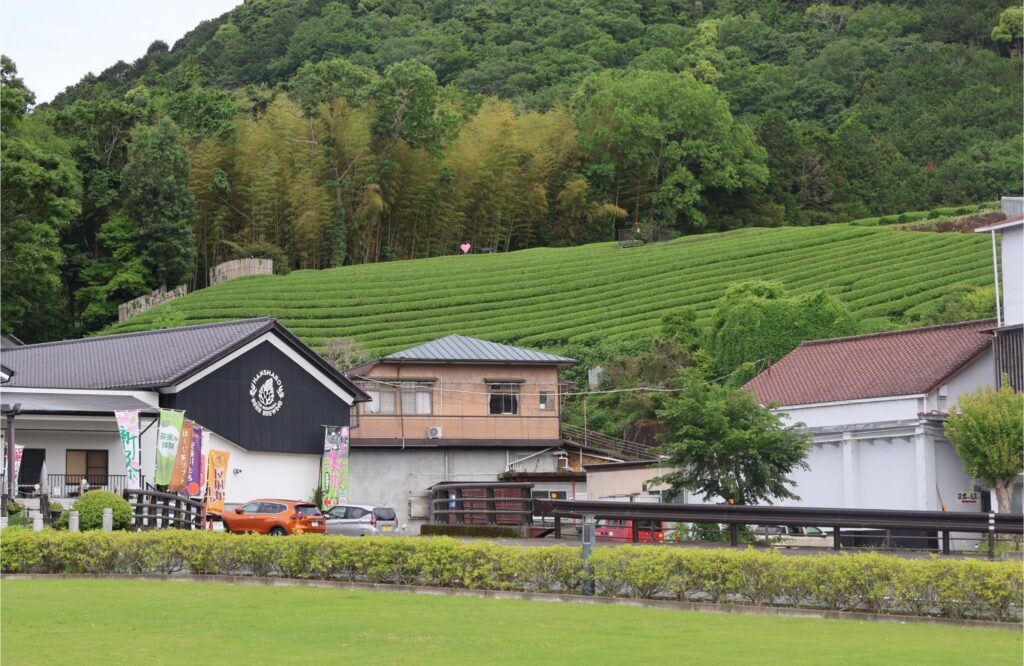 山の斜面に茶畑が広がっていました