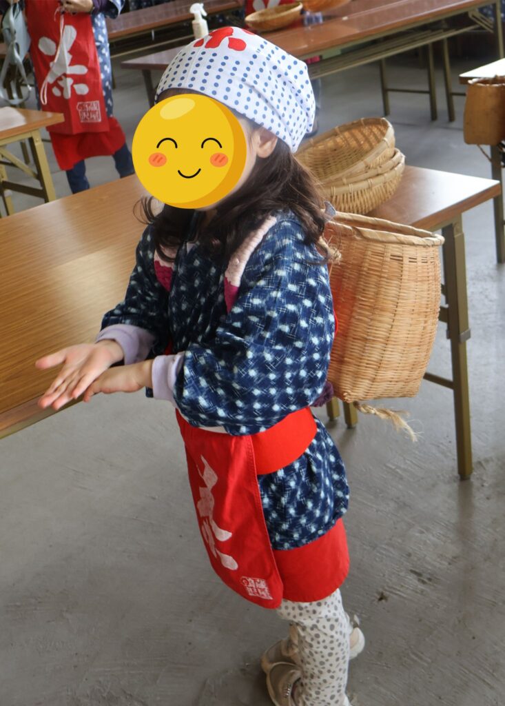 茶摘みの衣装に着替えて茶摘み体験をしました